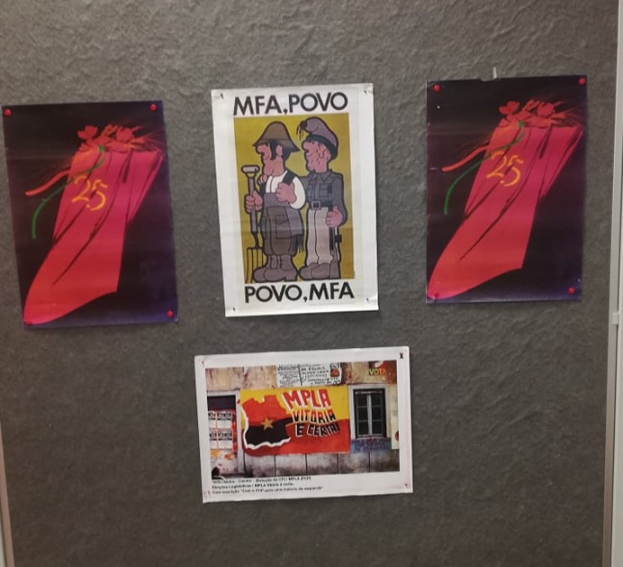 Este ano, a celebração do dia “25 de Abril de 1974”, trouxe à Biblioteca da Escola uma exposição de cartazes realizados pelas turmas do 7.º ano (A e B), 8.º ano (A e B) e 9.º ano (A e B), na disciplina de História, para comemorar, nesta data histórica, o golpe militar que derrubou o regime político ditatorial e restabeleceu a democracia após 47 anos de ditadura. Também os alunos do 6ºano, a equipa do PIICIE e as senhoras funcionárias do Piso do 2º ciclo, se associaram à efeméride, com a construção de um painel de grinaldas com cravos de abril que ficou lindíssimo. Por último, será construído um pequeno filme em que os alunos do primeiro ciclo, questionarão os colegas do 6º ano, sobre o significado e os acontecimentos desse dia, que Sofia de Mello Breyner marcou com as suas palavras: