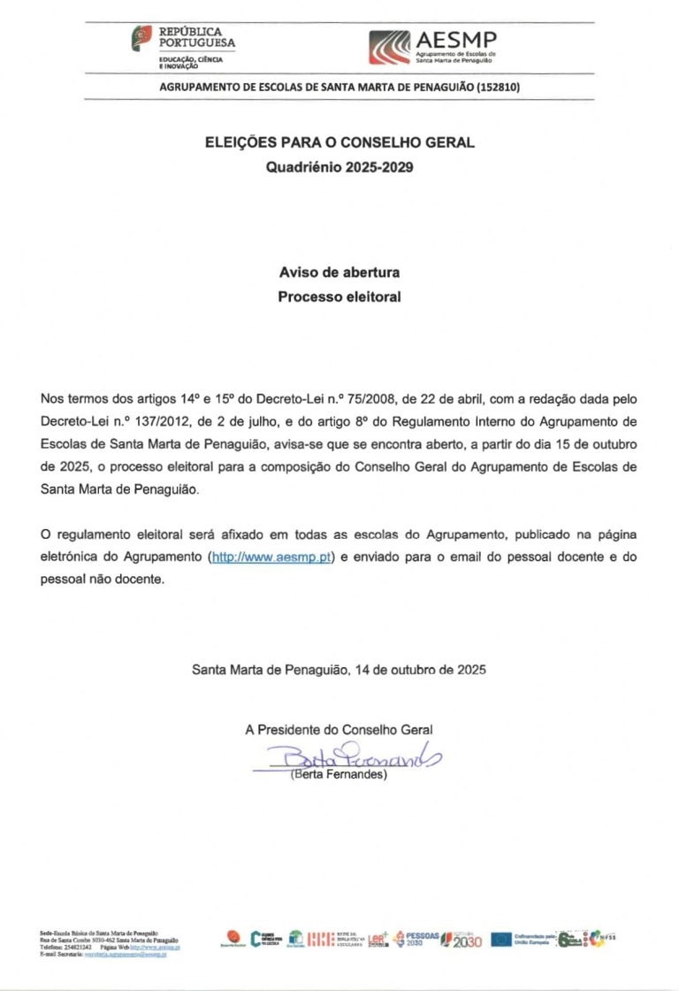 Torna-se público que a Comissão do Conselho Geral designada para apreciação das candidaturas para o cargo de Diretor(a), reunida na Escola Básica de Santa Marta de Penaguião, no dia 13 de maio de 2025, procedeu à verificação dos requisitos de admissão a concurso e considerou, por unanimidade, admitida a candidatura indicada no documento disponibilizado para o efeito.