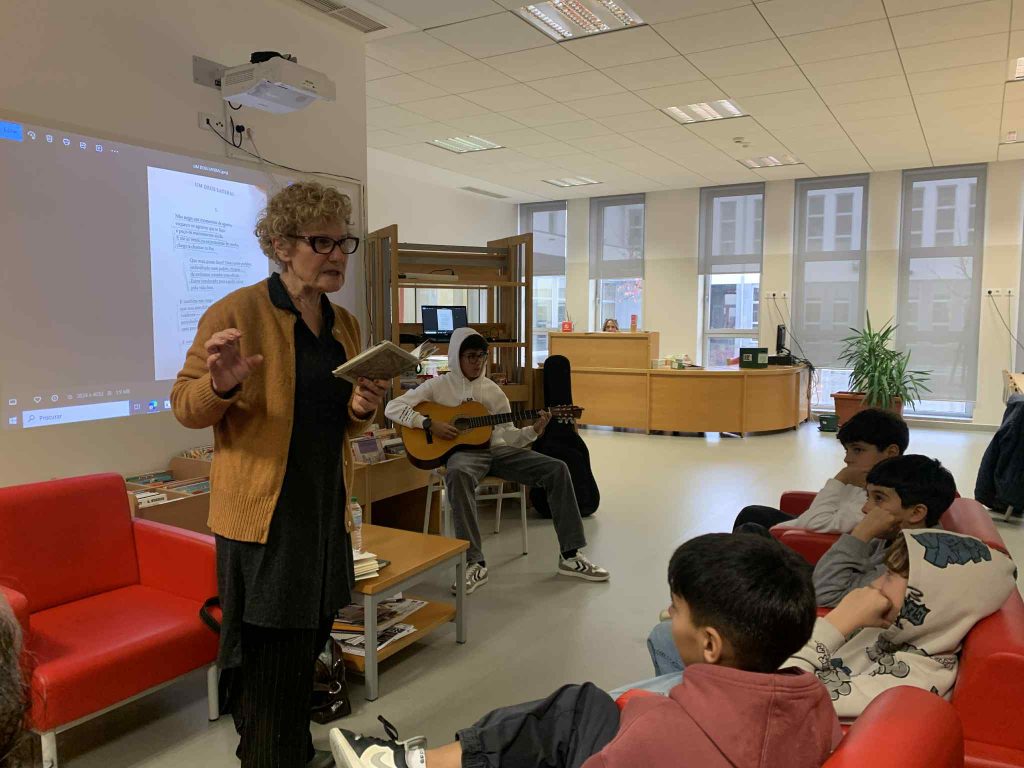 Rosa Canelas, professora jubilada de Português, antiga actriz e diseur interpretou, com mestria, alguns dos mais emblemáticos poemas de A.M. Pires Cabral, nos quais a questão de Deus emerge com particular acuidade, em livros como “Caderneta de Lembranças”, “A noite em que a noite ardeu” ou “Partilha de Lume”, na tarde de 24 de novembro (14h10-16h), na Biblioteca Escolar da EB 2,3 de Santa Marta de Penaguião, perante um auditório constituído por alunos de turmas dos quintos, sextos e nonos anos de escolaridade. O sarau de poesia, em jeito, também, de homenagem ao escritor transmontano, cujo conhecimento, a este jovem público da região, se procurou, outrossim, franquear, contou com introdução musical do aluno Micael Lino e, durante as duas sessões em que se desdobrou, os discentes foram, igualmente, convocados a, em conjunto, partilharem da leitura em voz alta, ritmada, atenta (d)a musicalidade dos versos do poeta natural de Macedo de Cavaleiros. Conduzidos pela mão sabedora de Rosa Canelas, os alunos foram presenteados, ainda, com um poema do conterrâneo Artur Vaz e, nele, exortados a procurar uma palavra, uma metáfora, uma imagem capazes de trazer Beleza ao mundo. Palavras, estas, tantas vezes rentes á terra, susceptíveis de nos dizer o inefável com uma simplicidade desarmante como a de Mia Couto, aqui também evocado em Mal me quer, ou a candura do humor de Pires Cabral que perdurará, por certo, por muitas tardes mais.