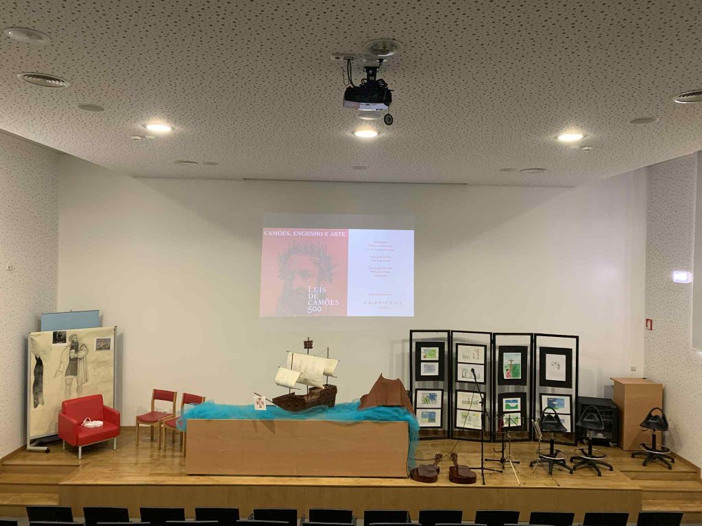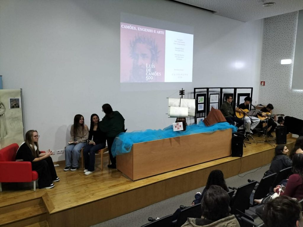 No âmbito das comemorações dos 500 anos do nascimento de Luís de Camões, integradas no projeto da RBE (Rede de Bibliotecas Escolares) “Camões, engenho e arte”, o Agrupamento tem vindo a desenvolver, desde o ano letivo de 2024/2025, um conjunto de atividades que procura dar a conhecer a vida e a obra do poeta, numa articulação entre a Biblioteca Escolar e as disciplinas de Português (professoras Luísa Fonseca e Teresa Gouveia), Educação Visual (professor João Ramos) e Musicarte (professor João Paulo Correia).