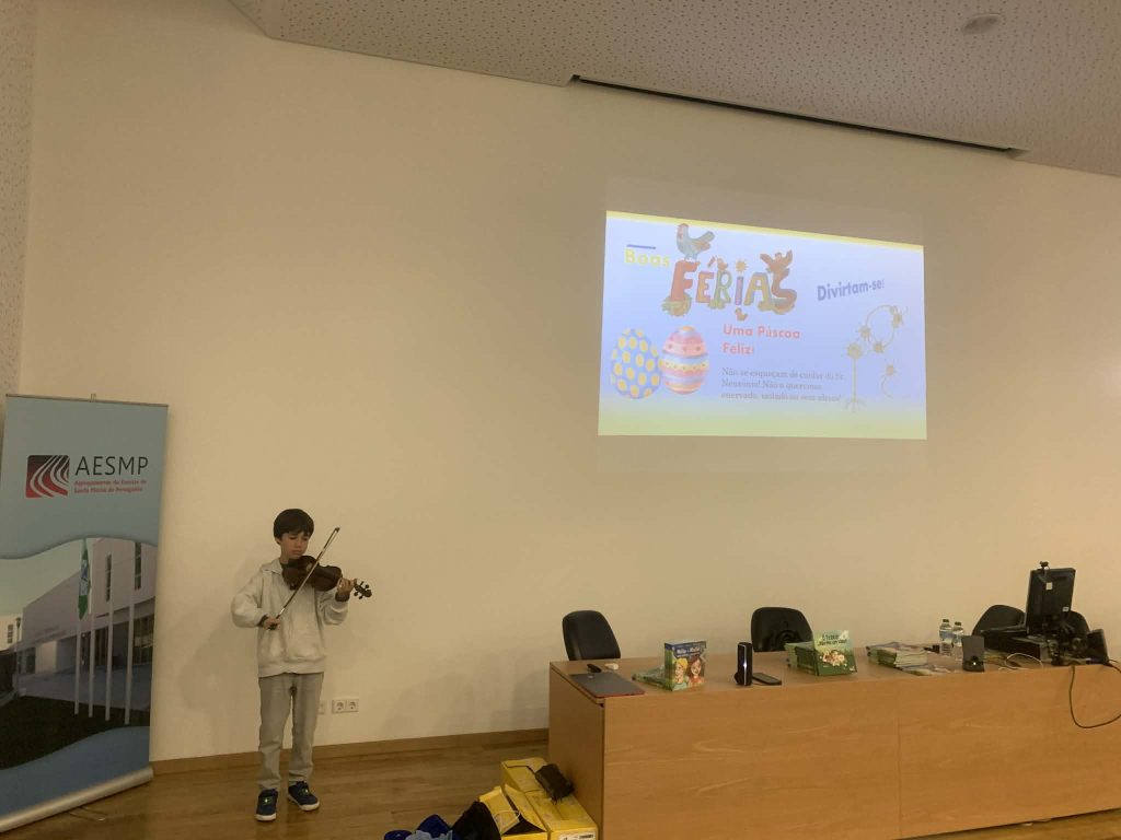 No final, todos fomos surpreendidos com um momento musical muito especial, protagonizado pelo Diogo, filho da autora, que encantou a plateia com três temas tocados no violino.