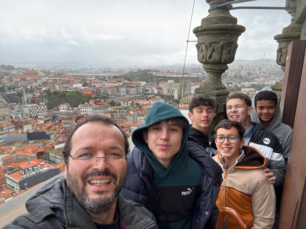 De manhã, a nossa primeira paragem foi na Torre dos Clérigos, um dos monumentos mais famosos do Porto. A torre fica no centro histórico da cidade, perto da Rua das Carmelitas, e foi construída no século XVIII. Tem cerca de 75 metros de altura e durante muito tempo foi o edifício mais alto de Portugal. Este monumento é muito importante para a cidade e oferece uma vista incrível sobre o Porto.